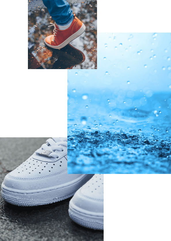 革靴のために独自に重合したフッ素樹脂の防水効果により、雨や雪・泥水などに含まれる水性・油性の汚れをはじき、大切な靴を優しくしっかり守ります。
