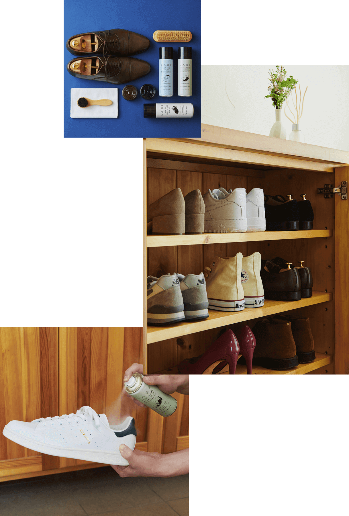 LAQ2のアイテムは、合わせて使うことで、さらに心地よい靴のキレイを体感できるように設計されています。